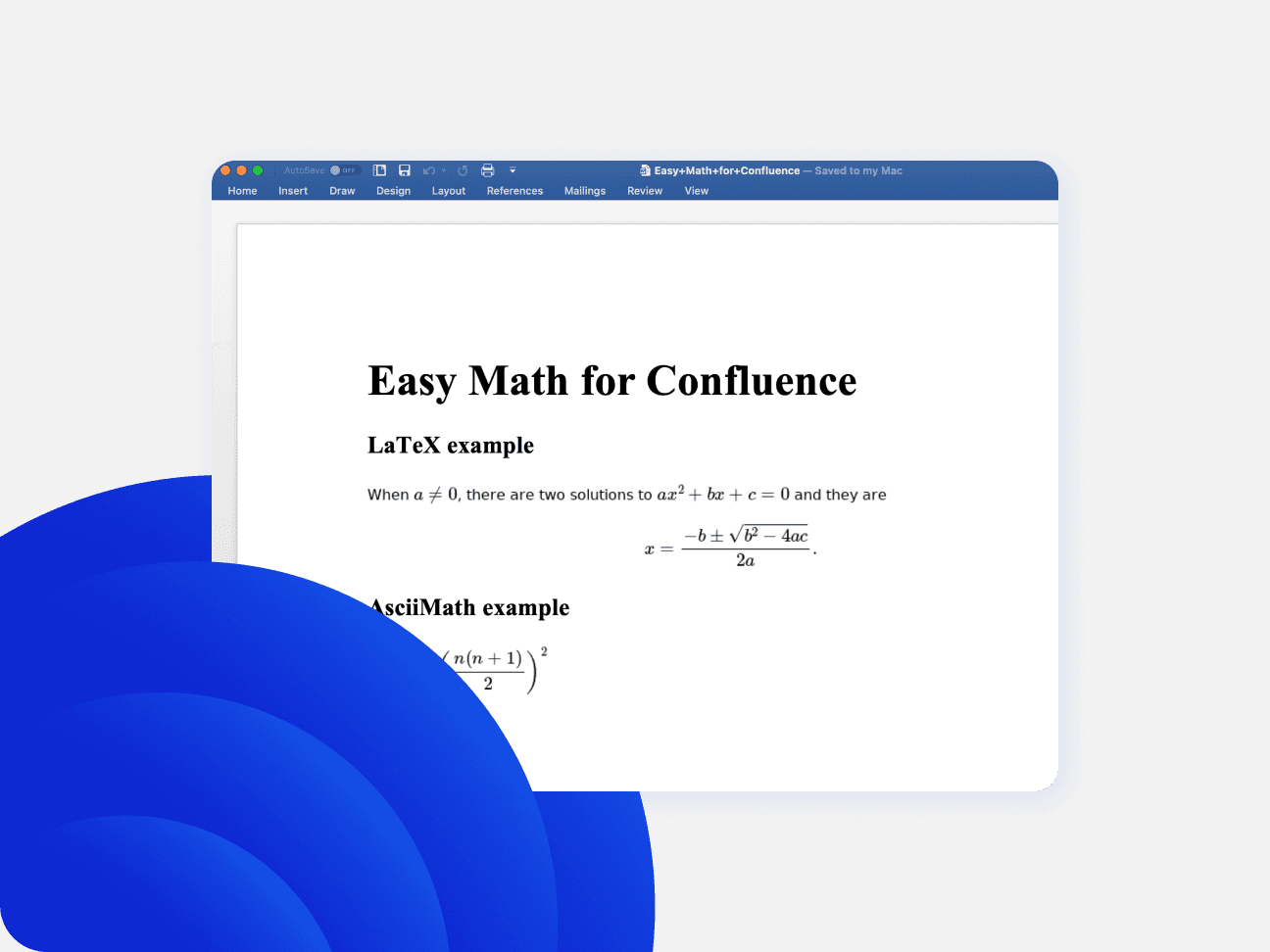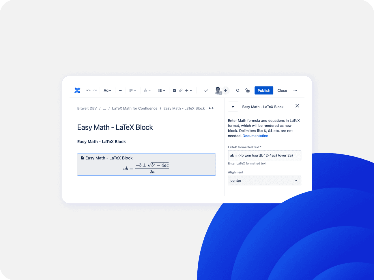 Seamlessly add, edit, and export complex LaTeX math formulas, equations and expressions to Confluence pages.