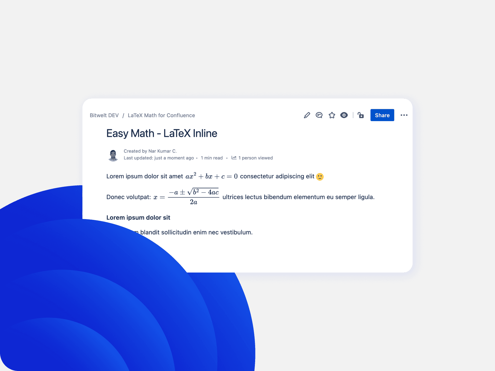 Forget attaching clunky math screenshots. Use the familiar LaTeX syntax to input math equations, units, and expressions to your Confluence documentation in real time.